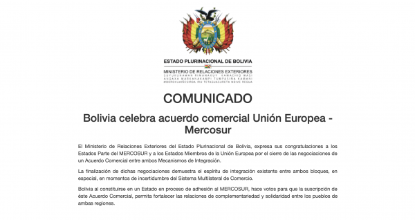 Conclusión de las Negociaciones del Acuerdo entre el MERCOSUR y la Unión Europea – Bruselas, 27 y 28 de junio de 2019 – Nota Conjunta de los Ministerios de Relaciones Exteriores, Economía y Agricultura, Ganadería y Abastecimiento En una reunión ministerial celebrada los días 27 y 28 de junio, en Bruselas, se concluyó la negociación…